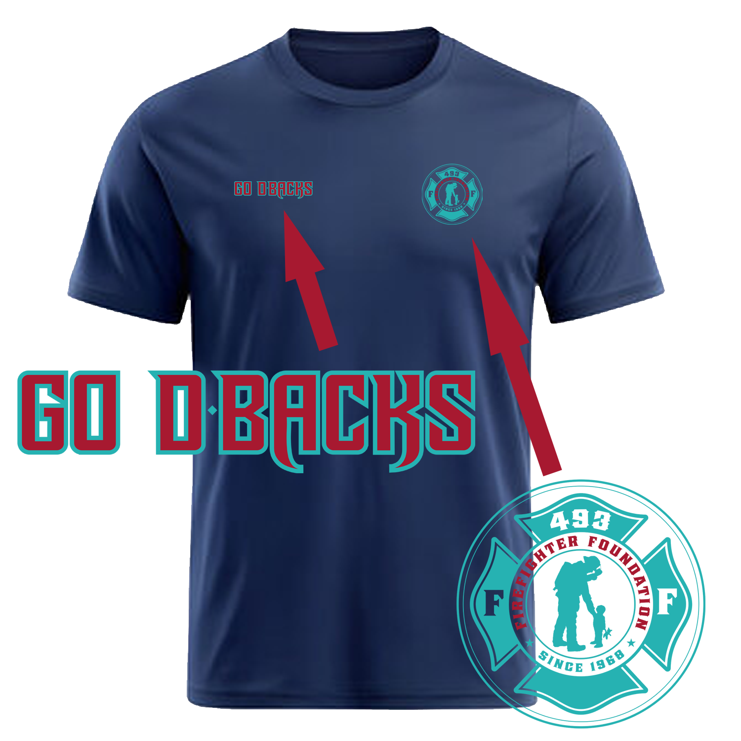 Rep the Arizona Diamondbacks and the Phoenix Fire Department with this limited edition t-shirt, created to rally behind our hometown team while raising funds for the 493 Foundation Cancer Fund.